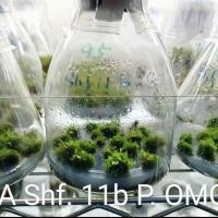 本款無菌交種瓶苗 ( 亞猴 與 OMG 交種 ) 的狀況參閱 照片 1 , 有些已經開始生成孢子體或長真葉了 .